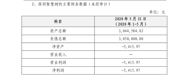 在公告中,半岛网站网页版官网在线-半岛(中国)科技披露了深圳智慧树的主要财务数据(未经审计),如下图所示。